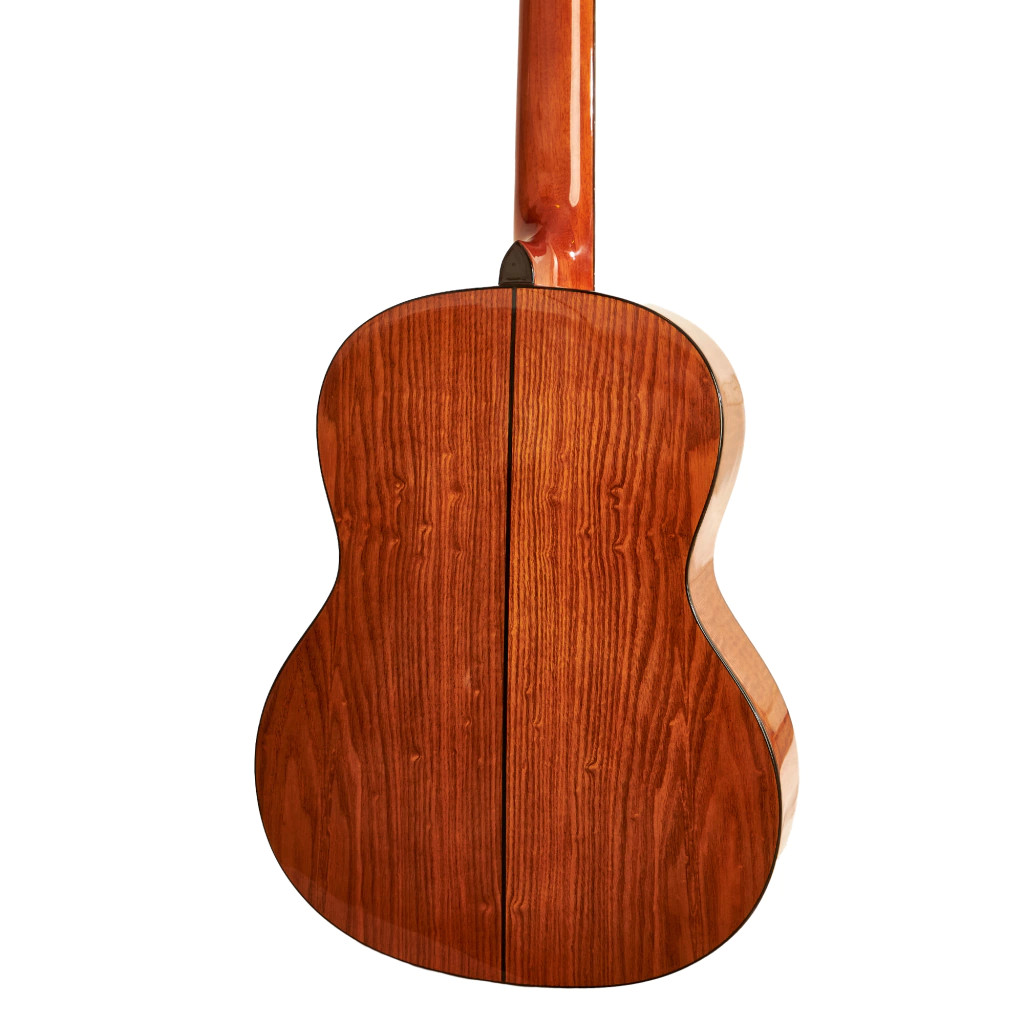 La guitarra clásica Medio Concierto Rómulo García E-500 es un instrumento de gran proyección y riqueza sonora, ideal para intérpretes exigentes. Su tapa de Spruce especialmente seleccionada brinda un sonido claro y con mucho cuerpo, mientras que el aro y fondo de Caoba aportan profundidad y calidez. Los trastes de alpaca garantizan suavidad y precisión en el toque.